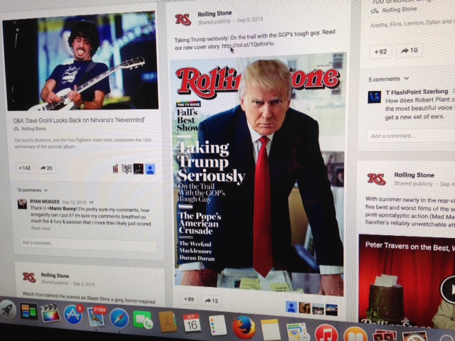 Two businesses that do a good job of integrating their communication plan and achieving a good balance of push/pull marketing are Rolling Stone magazine and Musician’s Friend, a music equipment retailer. This very day, I received in the US mail my latest issue of Rolling Stone magazine with Donald Trump scowling at me from the front cover