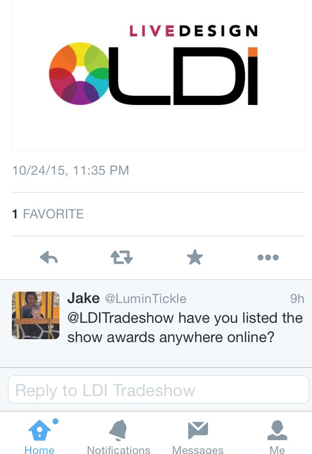 This week’s assignment for MMC-5006 was to follow (for educational purposes) the goings-on at LDI 2015, the annual convention for lighting/audio/live event design professionals held in Las Vegas, NV from Oct.19th-26th. I was tasked with evaluating the event’s overall integrated marketing communication plan.