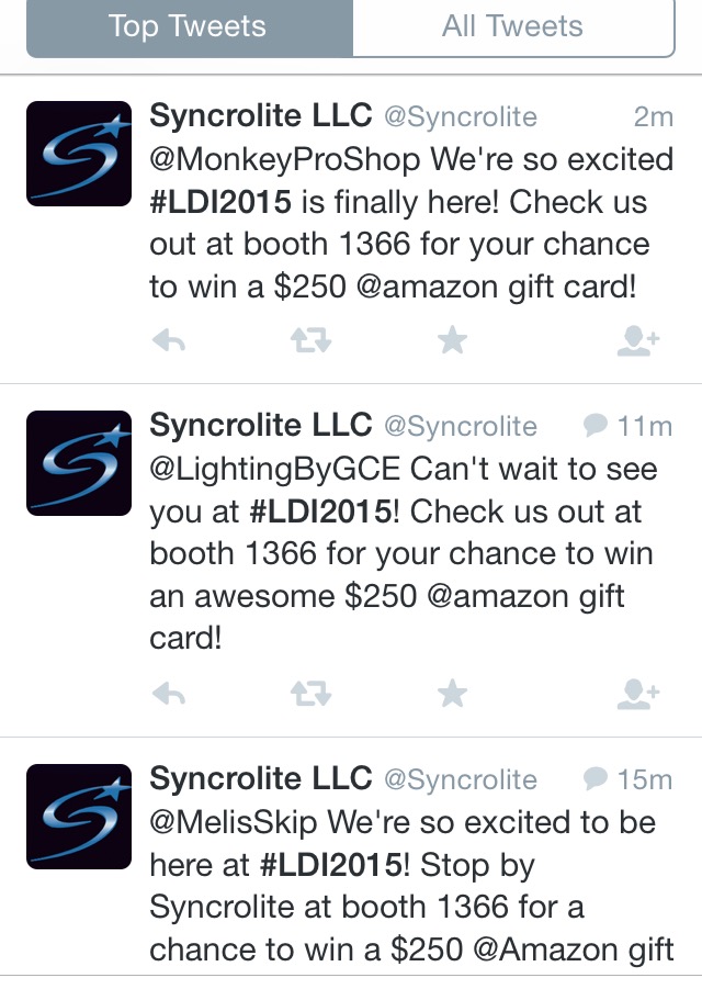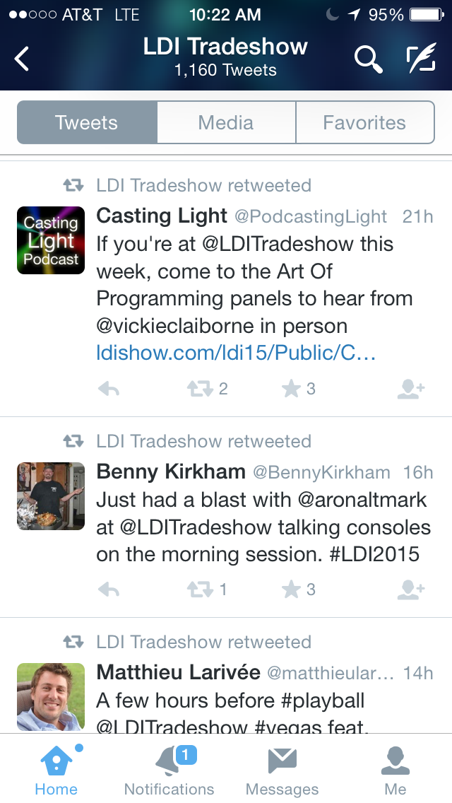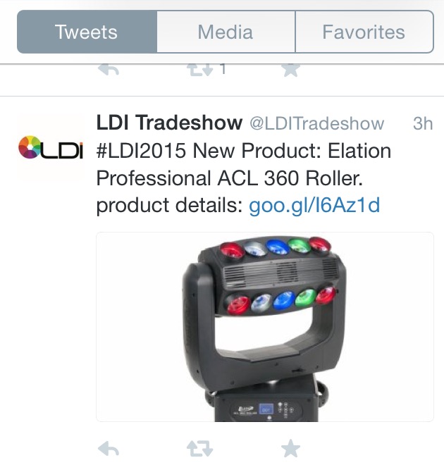 What the LDI2015 Twitter feed also did well was serve as a communication venue for show vendors. Many vendors jumped on the #LDI2015 train: