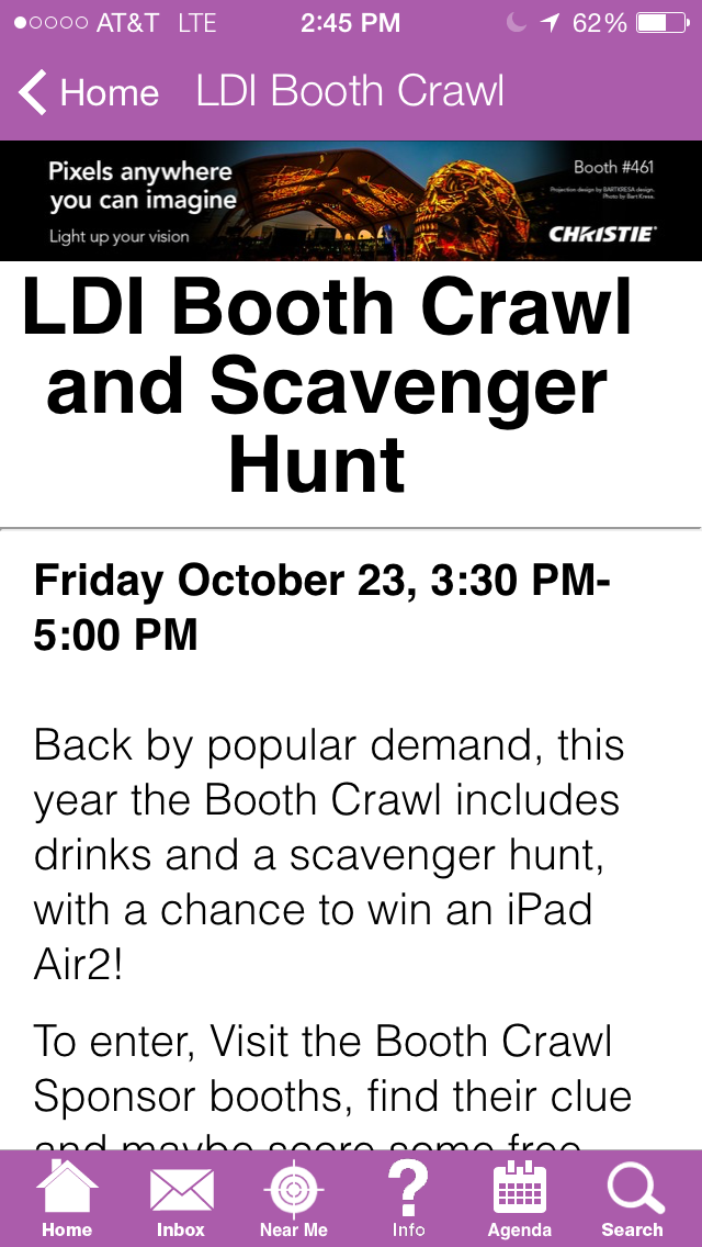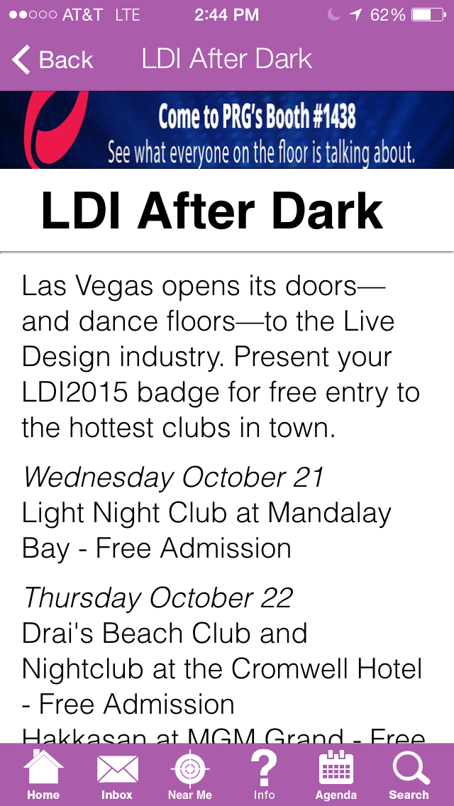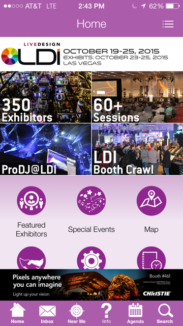 The LDI2015 custom software app was easy to navigate, mobile friendly, and definitely a big part of the promoters’ communication plan as they used it for mapping/directions, exhibitor information and location, new product information, after-hours promotions, individual agenda-planning, and more: